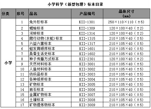 中小學(xué)標準配備系列包埋標本涵蓋了國家中小學(xué)標準配備標本要求的所有標本品種,包括植物外形、植物生活史、植物結(jié)構(gòu)、動物外形、動物生活史、動物結(jié)構(gòu)、動物骨骼、動物解剖,礦物等標本產(chǎn)品。產(chǎn)品符合國家教育部行業(yè)標準、企業(yè)標準、以及行業(yè)通行的安全標準,與教學(xué)大綱緊密配套,是中小學(xué)自然生物課堂的直觀教材和先進教學(xué)用具。
