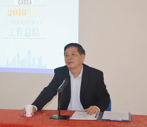 廣西教育裝備行業(yè)協(xié)會陳鐵華會長在會上做了2016年度工作總結(jié)和下一年度工作計劃報告,他表示,2016年協(xié)會基本完成各項(xiàng)工作任務(wù)目標(biāo),并對這一年來上級領(lǐng)導(dǎo)和各成員單位對協(xié)會各項(xiàng)工作的支持表示衷心感謝!隨后,陳會長簡要總結(jié)了這一年來協(xié)會完成工作情況,并介紹了各項(xiàng)工作取得的成果,特別是最近圓滿完成籌辦第71屆中國教育裝備展示會任務(wù),獲得了政府及社會各界的極大肯定,這與大家的不斷支持和努力是分不開的。對于即將到來的新一年,陳會長做了協(xié)會工作任務(wù)布署,未來一年,廣西教育裝備行業(yè)協(xié)會將進(jìn)行機(jī)構(gòu)改革,成立各個專業(yè)分會,發(fā)展推廣隊(duì)伍,讓企業(yè)全方位參與協(xié)會工作;不斷加強(qiáng)管理,形成寬松、互動、共贏的環(huán)境,建立公正、公平、嚴(yán)明的規(guī)章制度,更好的服務(wù)于企業(yè),促進(jìn)廣西教育裝備行業(yè)良好發(fā)展。最后,陳會長對南寧千年工藝股份有限公司、南寧千帆教學(xué)科技有限公司給予本次會議的大力支持表示感謝,并祝愿協(xié)會各成員單位事業(yè)興旺發(fā)展!