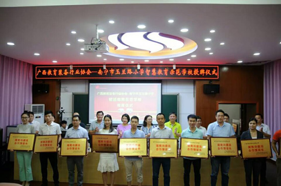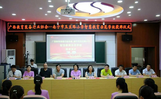 2018年6月27日上午,廣西教育裝備行業(yè)協(xié)會(huì)智慧教育示范學(xué)校掛牌儀式在南寧玉蘭路小學(xué)舉行,標(biāo)志著南寧市玉蘭路小學(xué)新時(shí)代教育信息化發(fā)展駛?cè)肓丝燔嚨溃哂欣锍瘫街匾饬x。與會(huì)領(lǐng)導(dǎo)、全國教育裝備界的各知名企業(yè)代表、愛心人士、家長代表、教師代表,一同出席了活動(dòng),見證了這一歷史性的時(shí)刻。